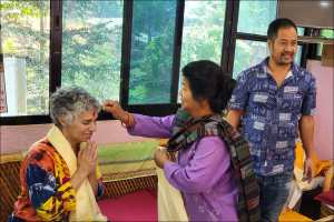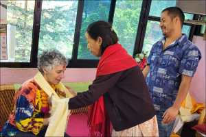The next morning, Shaha, Pushpa and Beena, gave me blessings of tikas, placed garlands of marigolds around my neck for good luck, draped scarves of honor around me. We laughed, we got weepy, we had our photos taken.